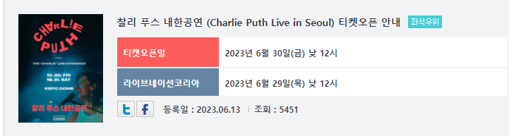 오늘은 찰리푸스 내한 콘서트에 대해 알아보았습니다. 첫 내한 공연은 티켓 오픈 단 10분만에 매진되었다고 하니 이번에도 치열한 티켓팅이 예상되지만 일정을 잘 확인하셔서 꼭 모두 티켓팅 성공하시길 응원하겠습니다!