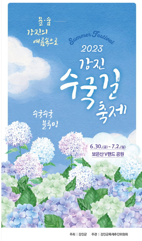 안녕하세요. 오늘은 강진 수국길축제에 대해 알아보려고 합니다.