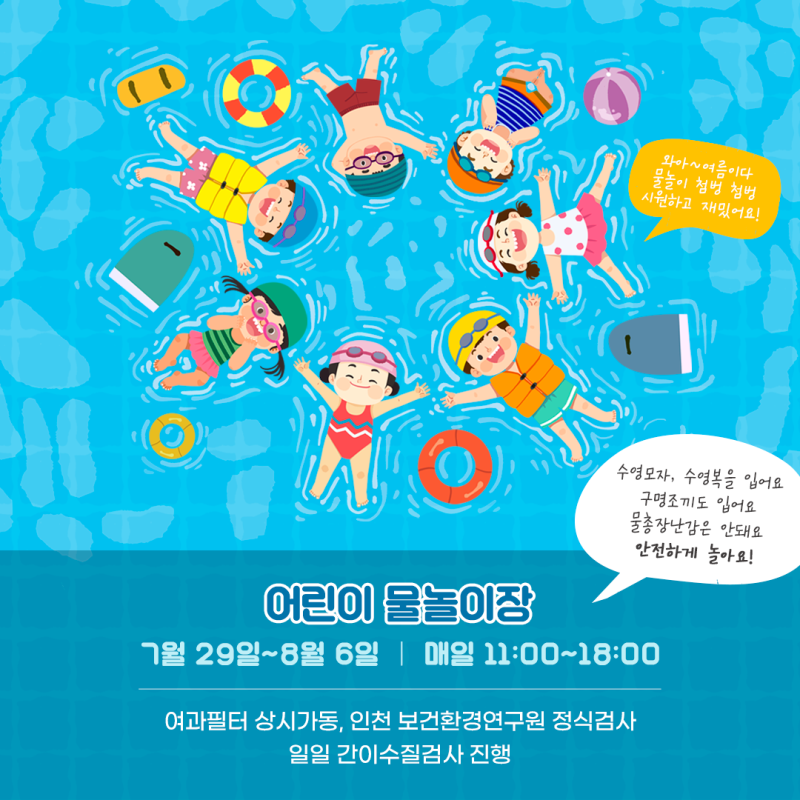 여과필터 상시가동 및 인천 보건환경연구원 정식검사, 일일 간이 수질검사를 진행하고 있다고 합니다.