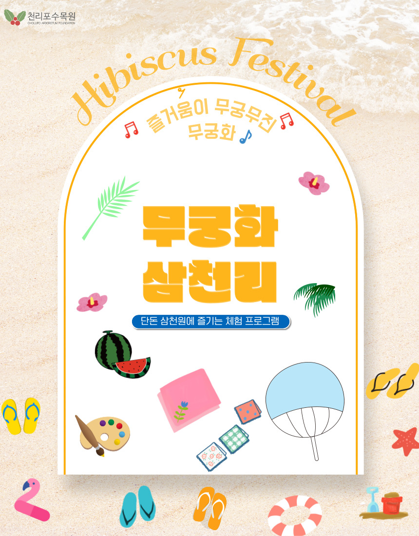 여름 정원에서 즐기는 다양한 무궁화 체험 프로그램입니다. 페이스 페인팅, 나만의 부채, 나만의 꽃잎 손수건을 직접 만들어 볼 수 있다고 합니다.