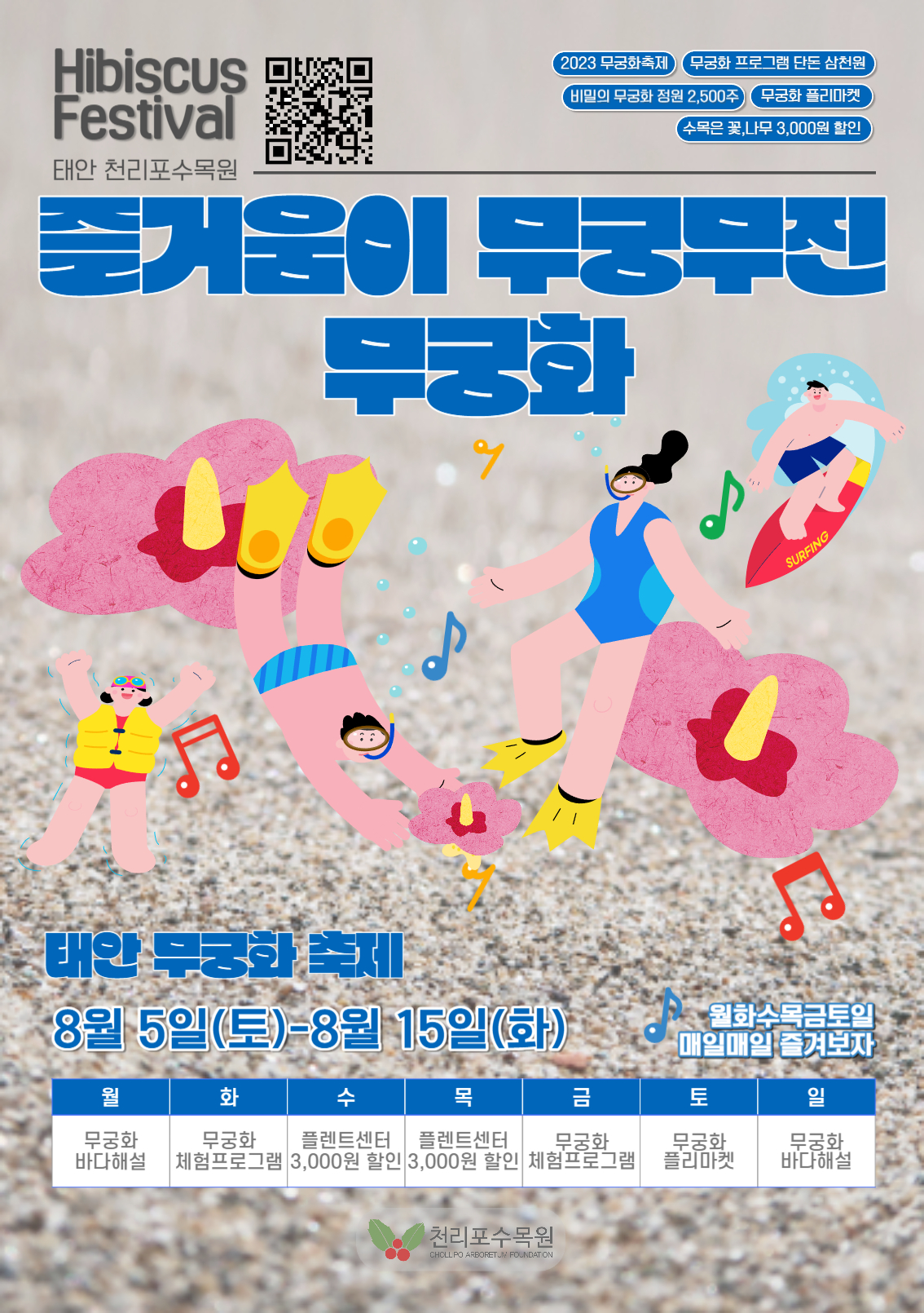 어느덧 8월에 접어들었습니다. 8월에도 다양한 축제가 진행됩니다. 그 중에서도 오늘은 천리포 수목원에서 열리는 무궁화 축제에 대해 알아보도록하겠습니다.