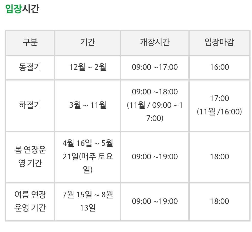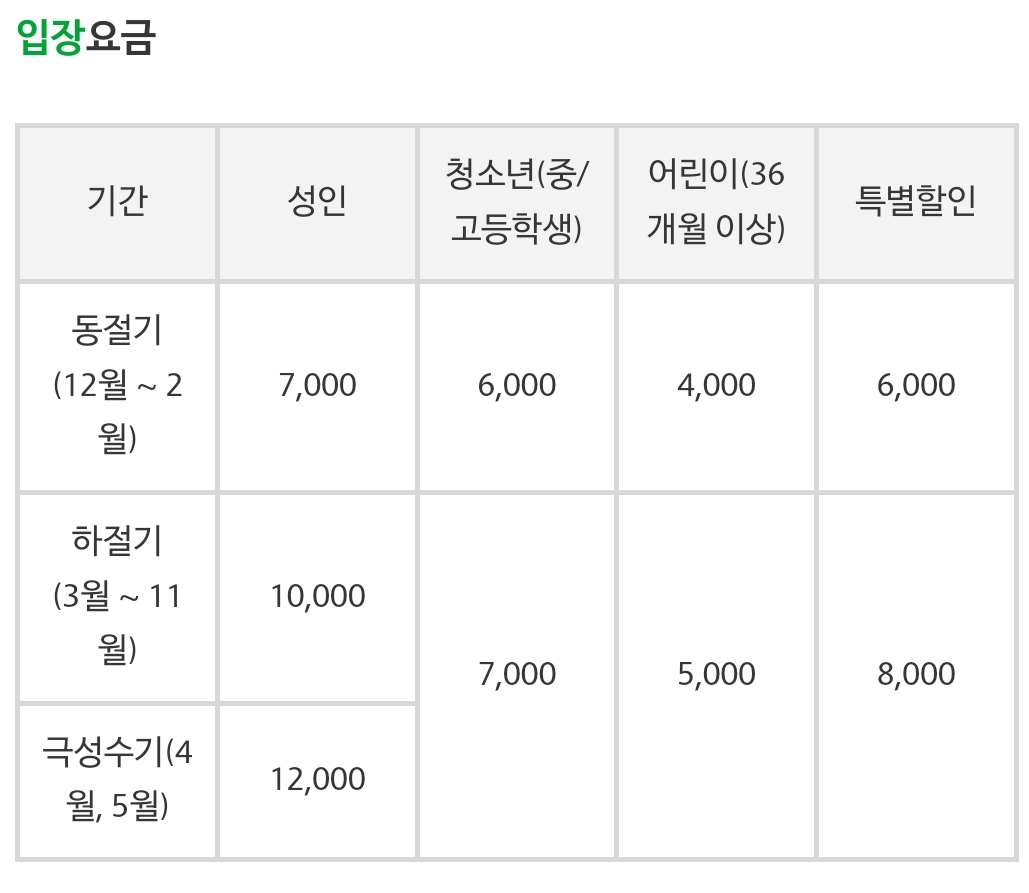 무료입장 - 중증 장애인, 36개월 미만 유아, 소원면민