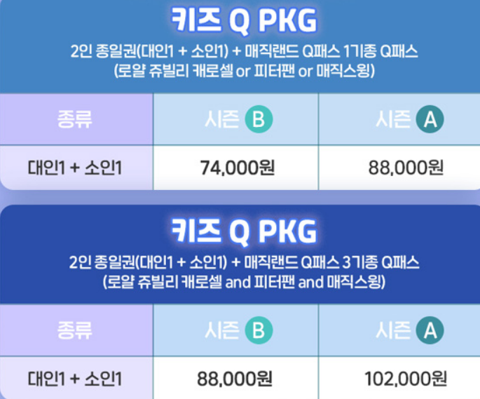 키즈 Q 패스 3기종 (매직 스윙, 로얄 주빌리 캐로셀 , 피터팬)
