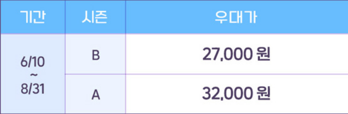 1. 여름방학 휴가 패키지 (기간 : 2023년 8월 1일 ~ 8월 18일까지)