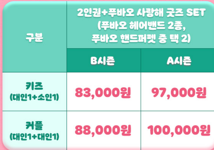 3. 바오 패밀리 패키지 ( 기간 : 7월 28일 부터 8월 31일 까지)