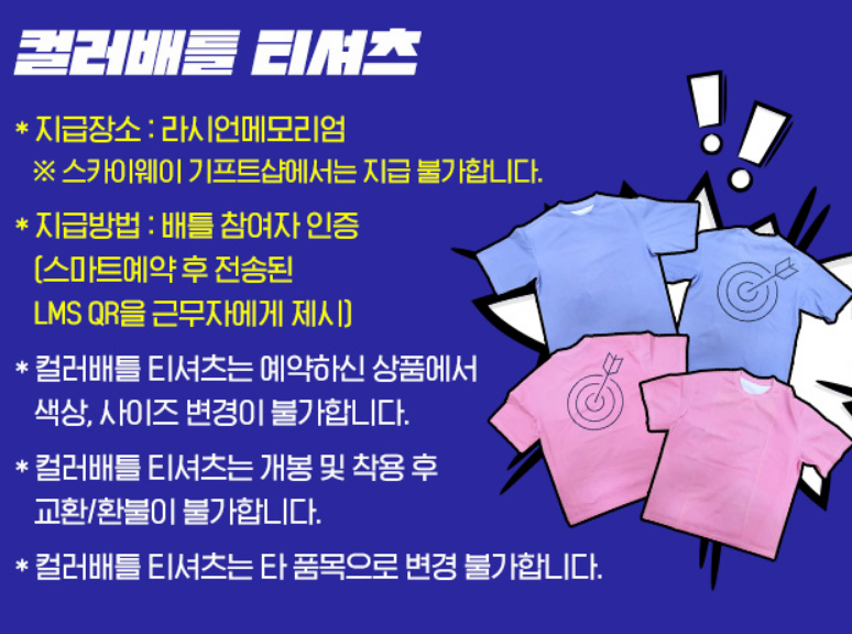 ▶참가자 : 200명 /회 (만 7세 부터 참여가능, 만 12세 이하는 반드시 보호자 동반 필요합니다. 동반 보호자도 컬러배틀 패키지 티셔츠를 반드시 구매하고 이용하여야 합니다.)
