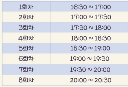 ▶시간 : 16시 30분 부터 20시 30분까지
