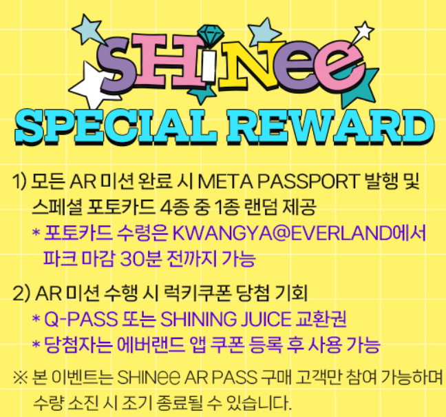 SHINEE AR PASS구매 고객 대상 AR 미션 완료 시 SPECIAL REWARD 제공