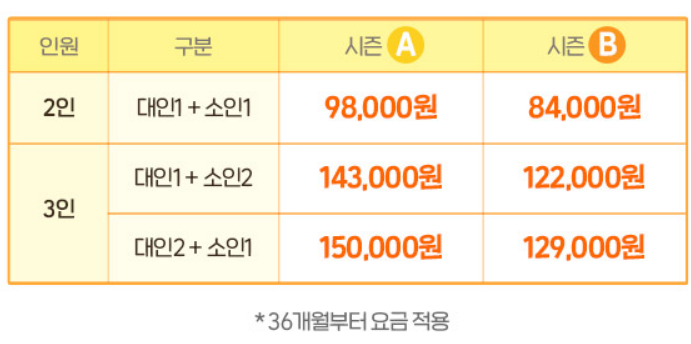 본 우대는 생일자 본인 및 동반 3인까지 할인 적용됩니다. (정기권 소지자는 본인외 동반인 4인까지 적용가능)