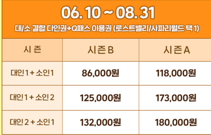 5. SUMMER 가족 패키지 (기간 : 6월 10일 부터 8월 31일 까지) 날짜별 금액 상이