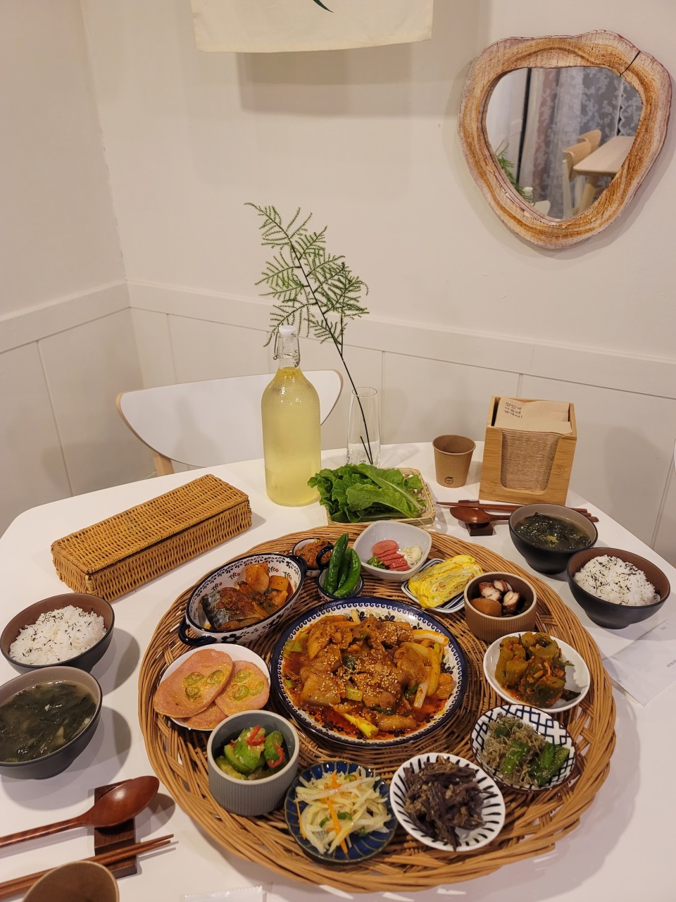 제주도 성산 숨겨진 맛집 소쿠리는 아기자기한 카페 같은 외관에 동그란 소쿠리에 흑돼지 두루치기와 10첩 반찬이 나오는 가성비 맛집입니다. 성인 15,000원 어린이 10,000원 유아 5,000원으로 소쿠리 정식을 맛볼 수 있습니다. 또한 메인 반찬 두루치기는 리필이 가능하다고 합니다. 정식은 보통 2인 이상만 가능하지만 여기는 1인 정식도 가능하기 때문에 혼자 여행 오신 분들에게 추천합니다.