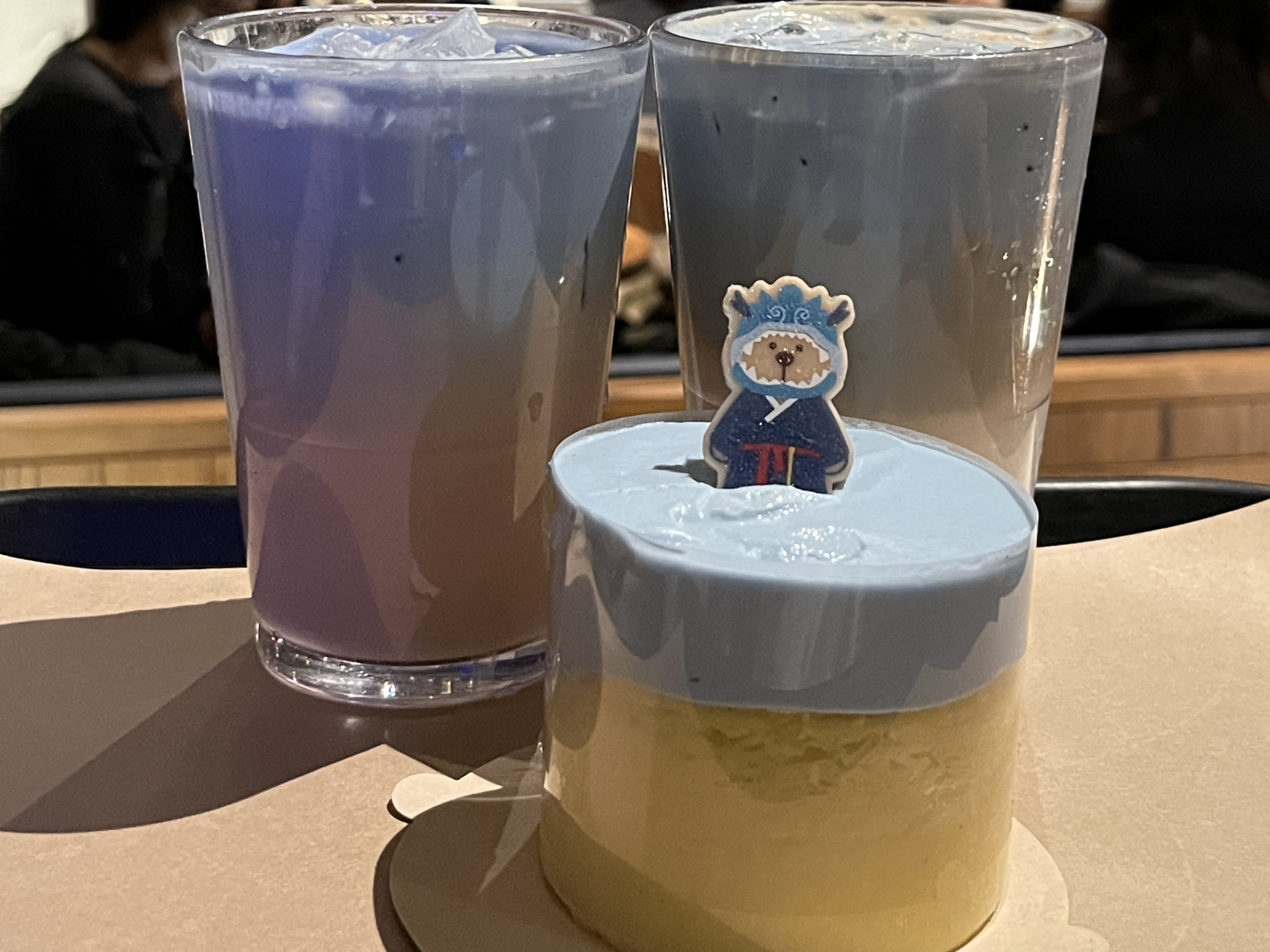 올해 푸른 용의 해를 맞이한 푸른 용 클래식 밀크티와 푸른 용 헤이즐넛 라떼, 푸른 용 수플레 케이크를 구매했습니다. 비주얼은 예쁘지만 맛은 평범한 편이라 기념으로 한 번쯤 사 먹을만한 정도라는 생각이 듭니다.