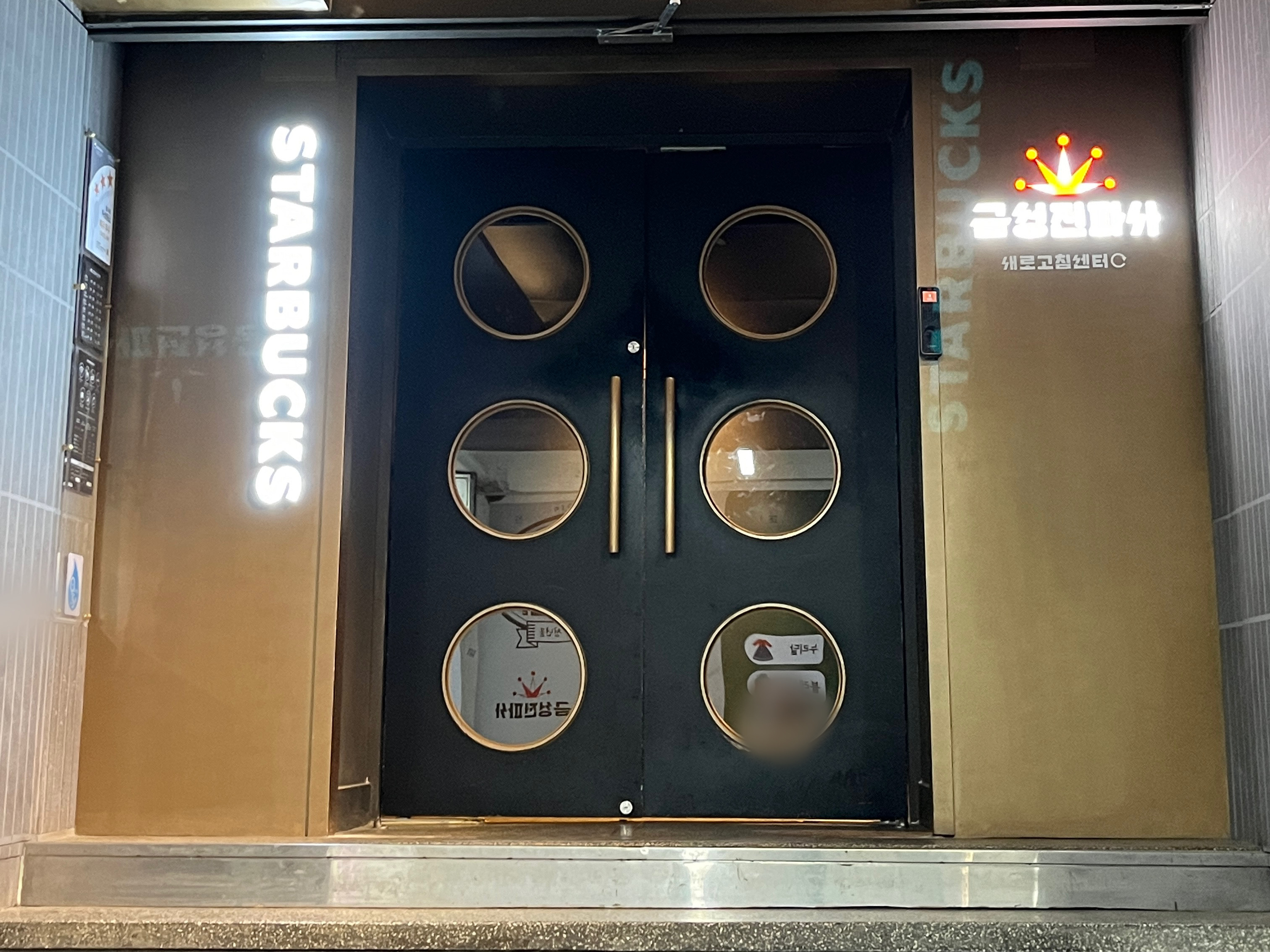 문을 열고 안으로 들어가 계단을 타고 조금 더 들어가면 스타벅스가 나옵니다.