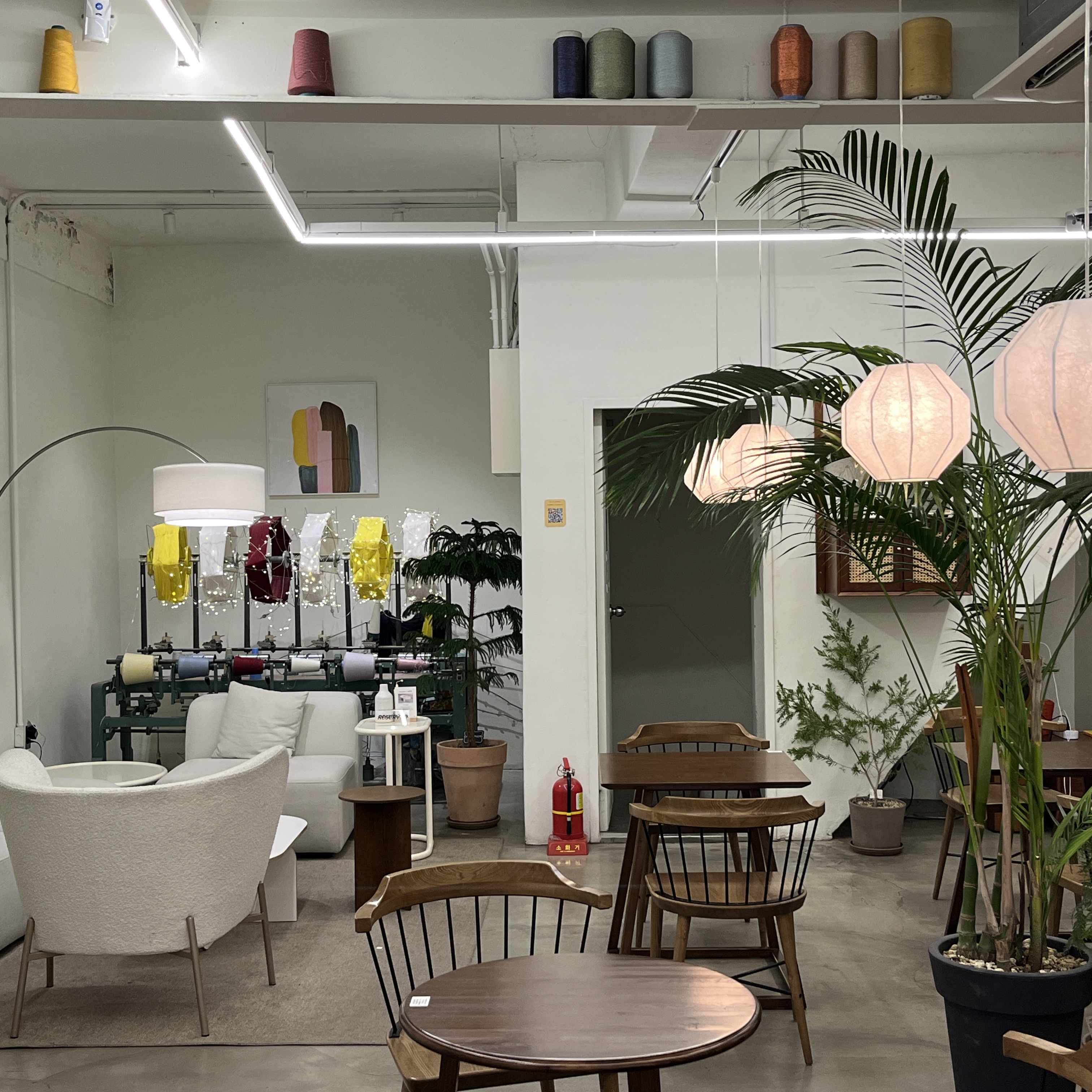 20년간 편직 공장으로 운영되었던 곳인 만큼 편직공장의 느낌을 살린 인테리어가 특징입니다. 군데군데 실과 편직기 등으로 편직공장의 분위기를 그대로 느낄 수 있습니다.
