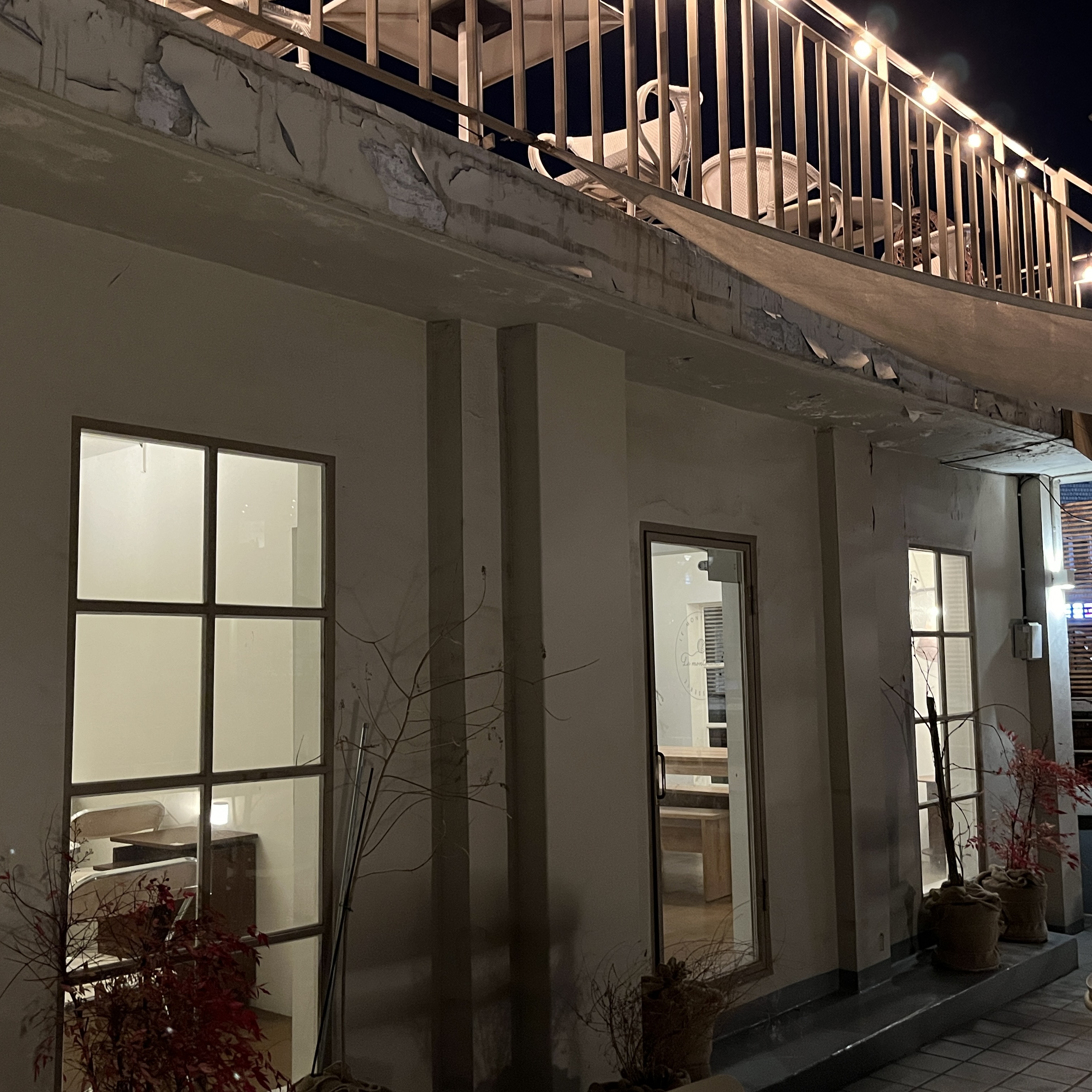 4층은 3층에서 야외에 있는 계단을 이용해 올라오면 됩니다. 해방촌의 전경을 한눈에 볼 수 있어 매우 매력적인 좌석이라 생각됩니다. 마침 저희가 갔을 무렵은 노을이 지는 시간대라 멋진 야경을 볼 수 있었습니다. 겨울이라 루프탑을 이용하지 못했지만 다음에 간다면 루프탑 자리를 꼭 이용하고 싶습니다.