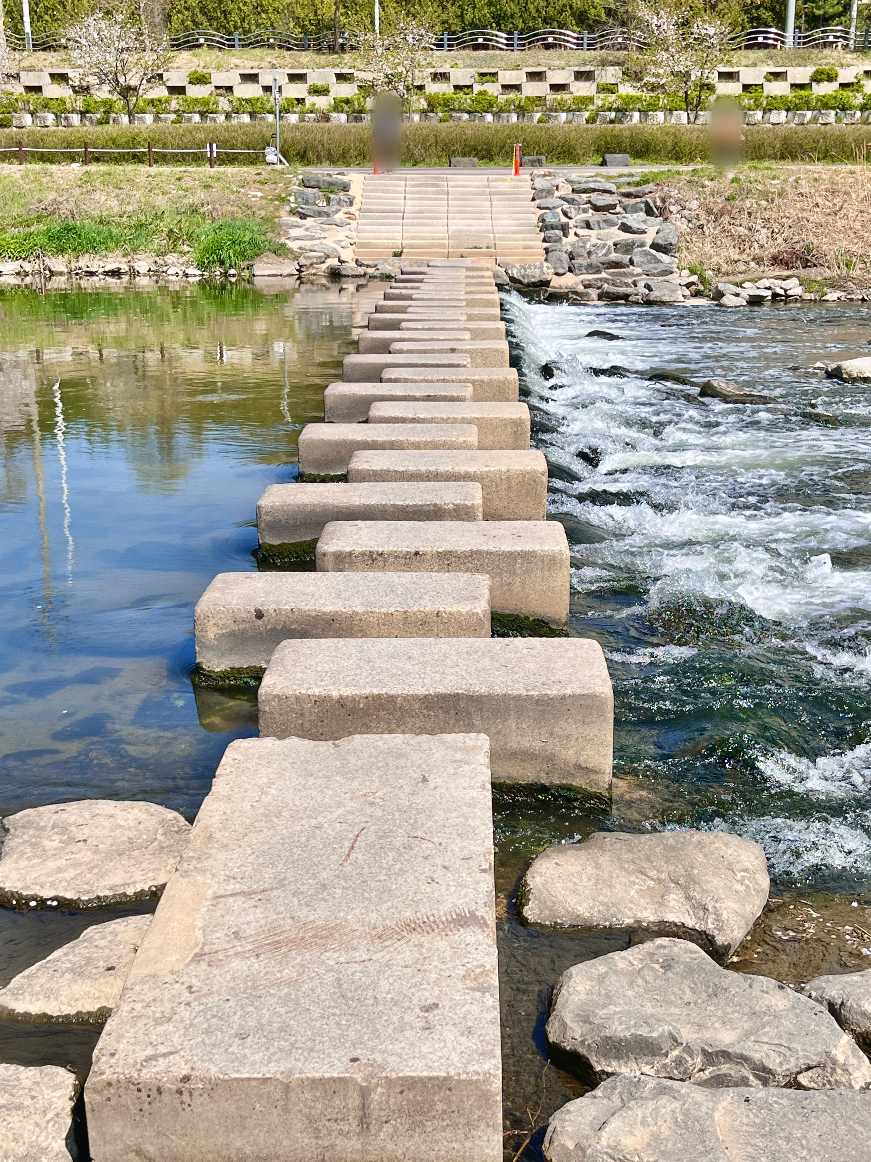 벚꽃길에는 중간중간 벤치는 있지만 산책로이기 때문에 돗자리를 피고 피크닉을 즐길 수 있는 곳이 없어 계단으로 내려와 중랑천의 돌다리를 건너 반대편의 나무가 있는 곳으로 향했습니다.