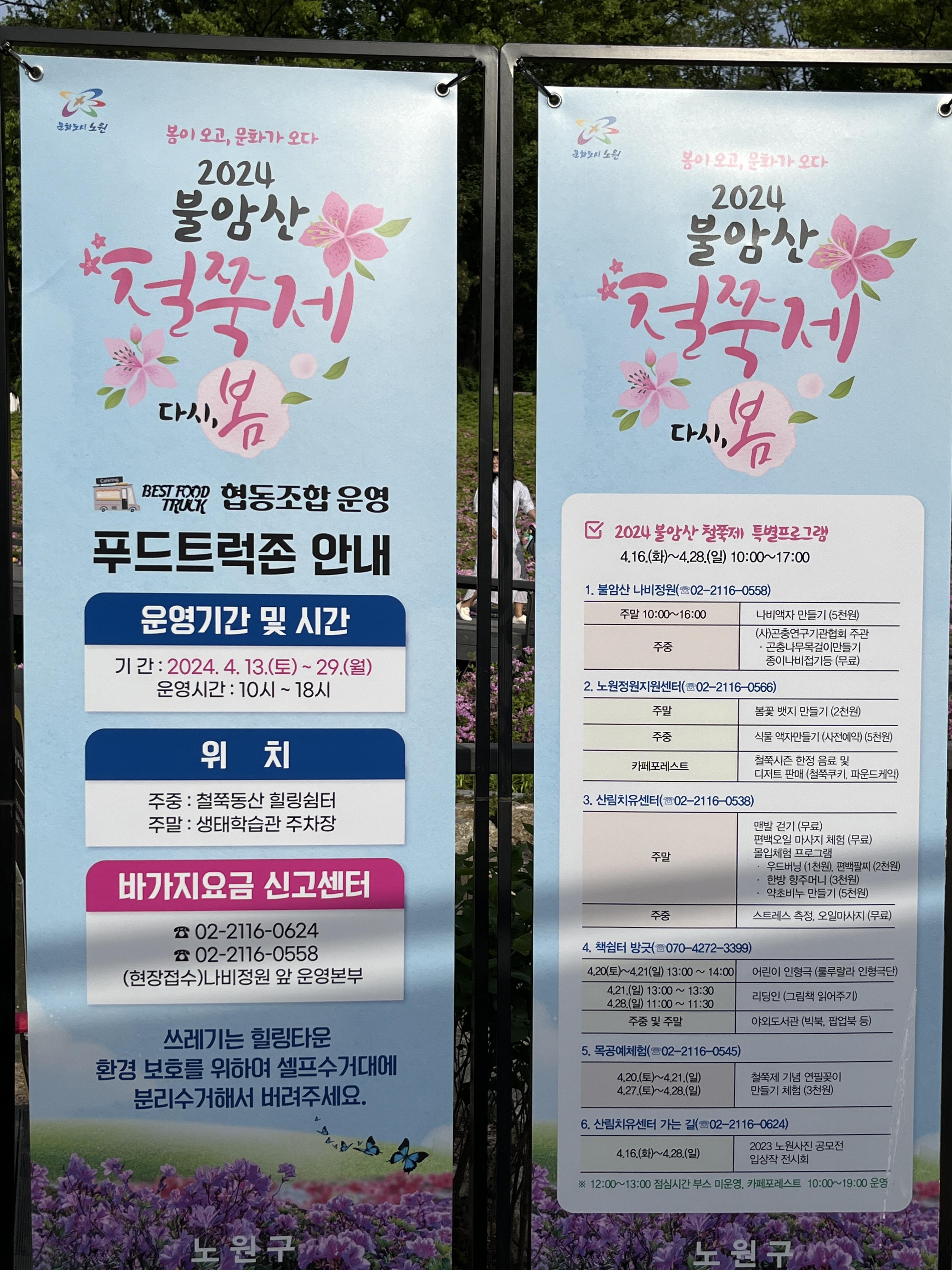 안녕하세요. 제쪼입니다. 지난주 노원에서 철쭉으로 유명한 불암산 철쭉동산에 다녀왔습니다. 작년에는 이상기후로 철쭉이 제대로 피지 못했는데요. 올해는 다행히 불암산 철쭉동산의 철쭉이 활짝 피었습니다. 4월 16일부터 28일까지 2주 동안은 철쭉과 함께하는 철쭉제도 진행했었다고 합니다. 4월 28일 기준 철쭉의 현황과 불암산 카페 포레스트 후기를 남겨보도록 하겠습니다.