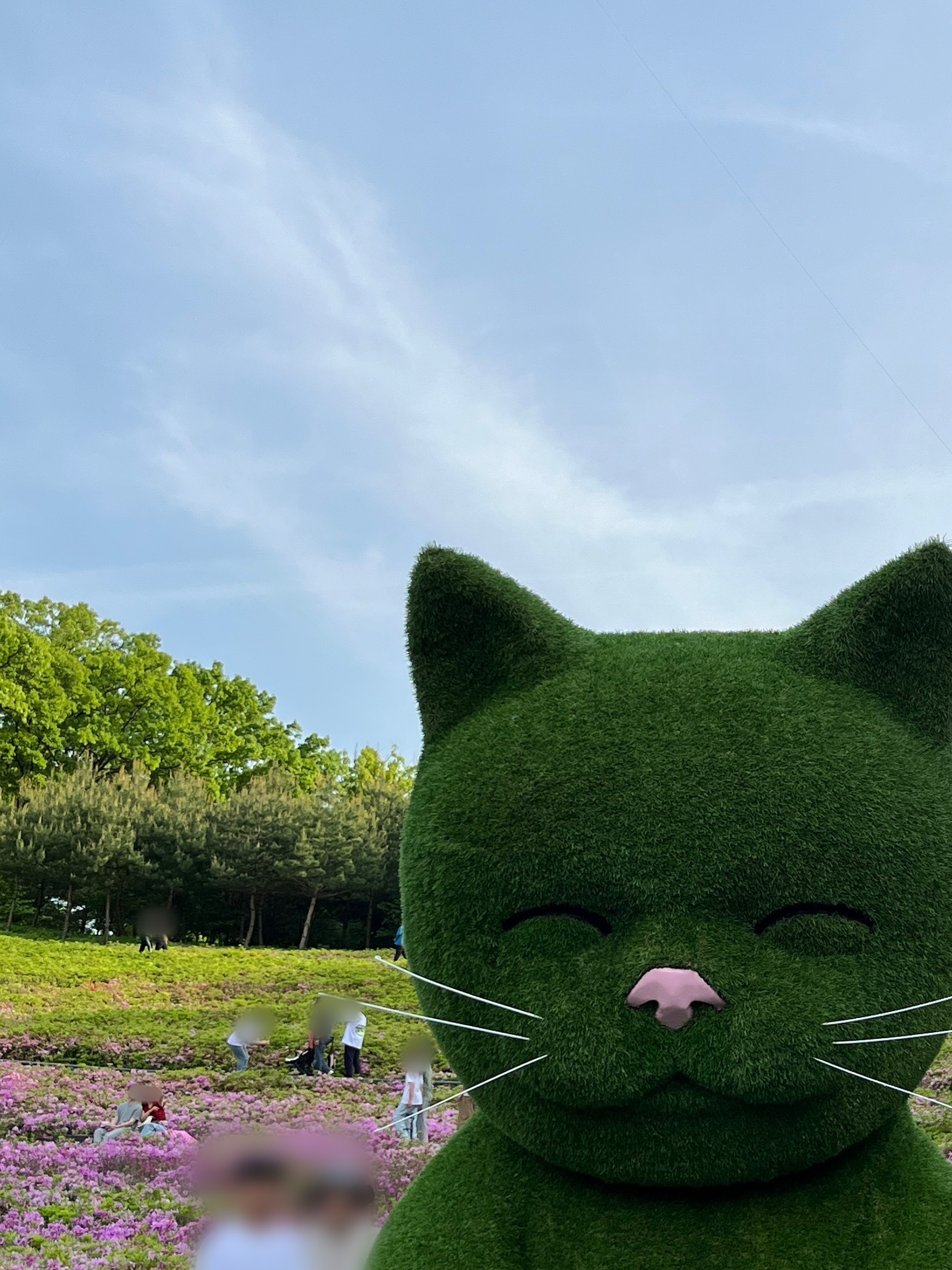 중간중간 사진을 찍을 수 있는 조형물들이 설치되어 있었습니다. 특히나 인기가 많았던 잔디 고양이 조형물에서는 많은 사람들이 줄을 서서 사진을 찍고 있었습니다.