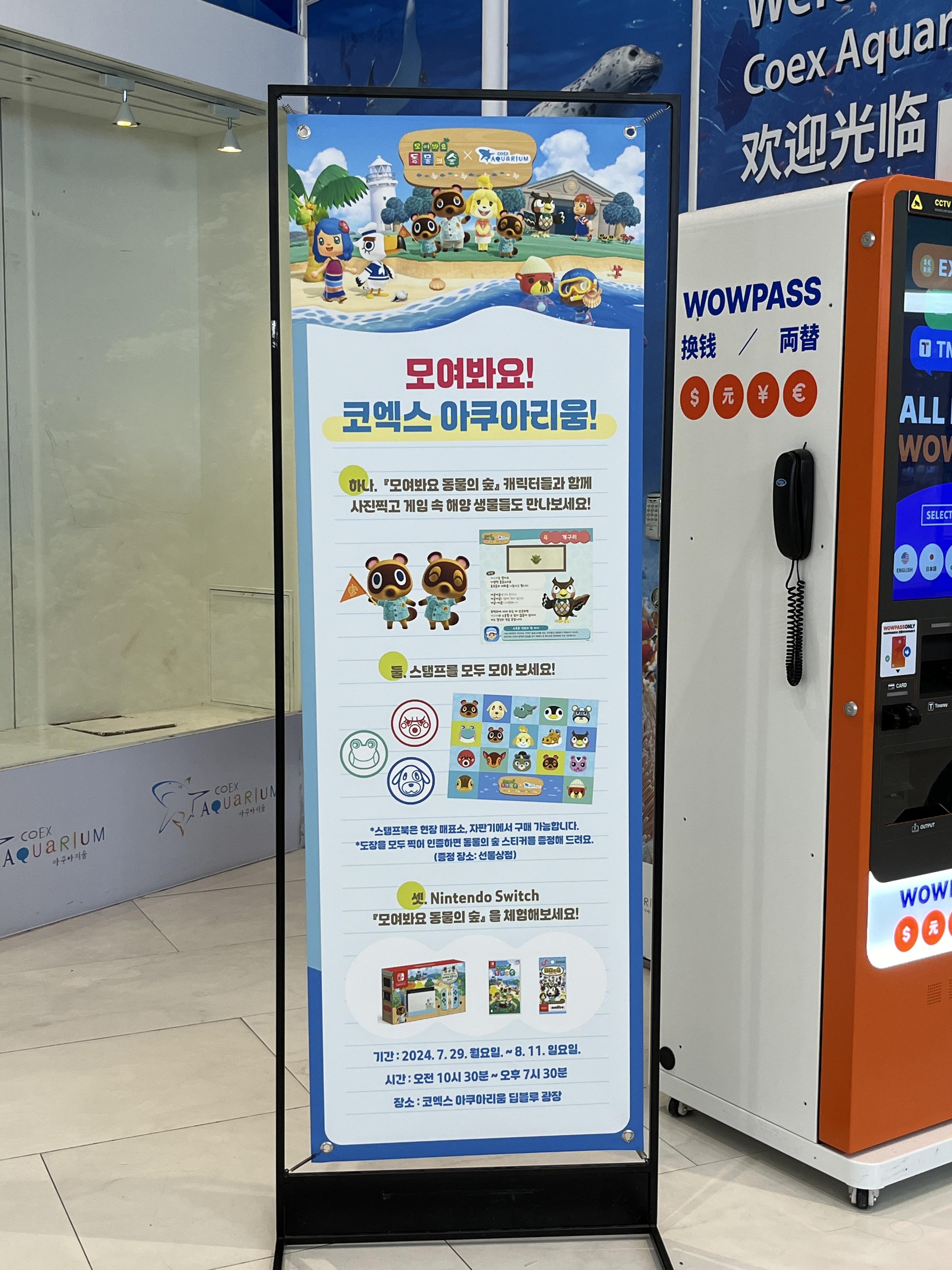 코엑스 아쿠아리움에 들어가기 직전 입구에 동물의 숲 콜라보에 관련된 내용들이 나와있는 홍보 안내문이 있습니다.