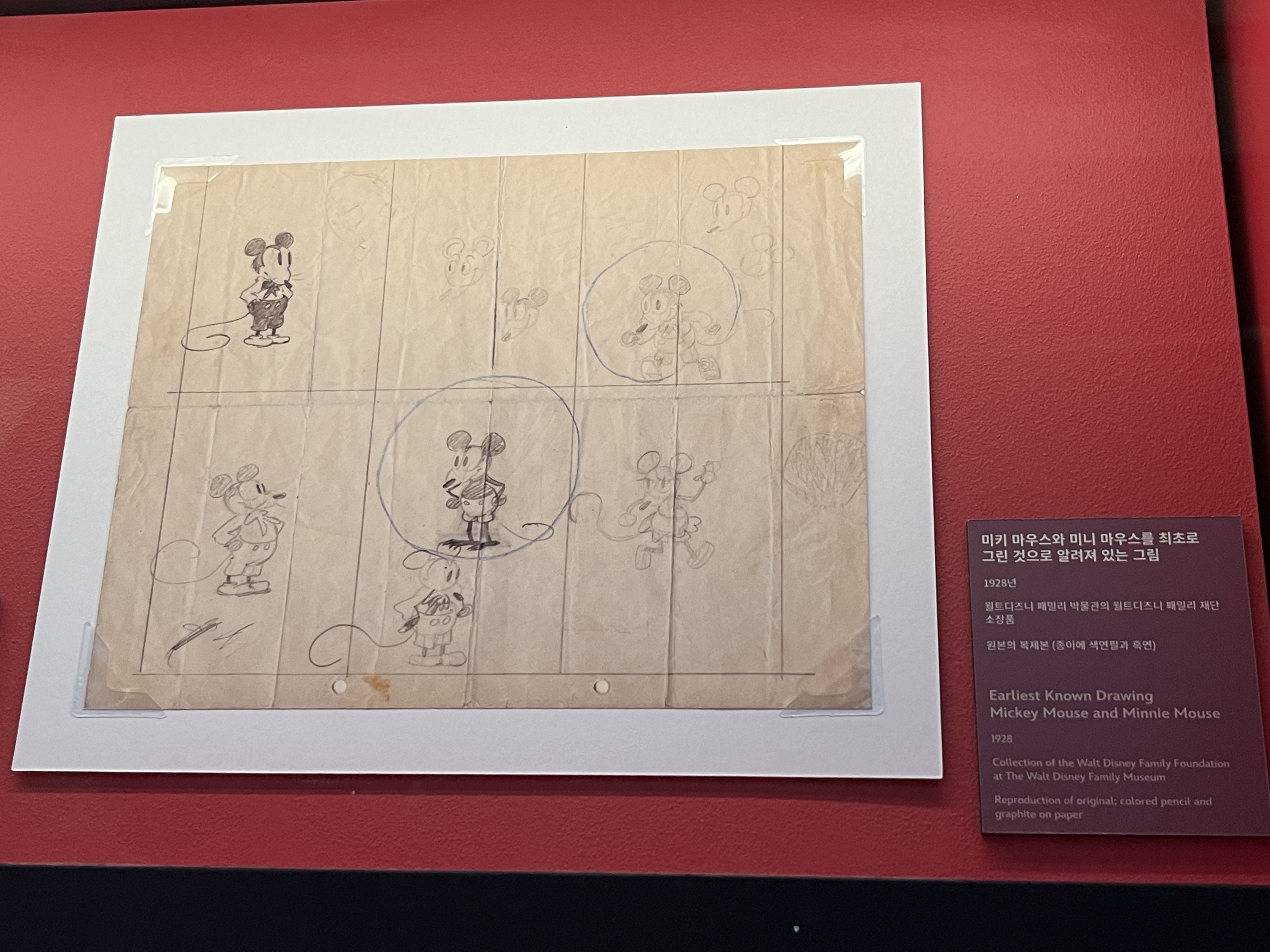 이 그림은 미키 마우스와 미니 마우스를 최초로 그린 것으로 알려진 그림인데요. 지금의 미키마우스보다는 더욱 쥐 같은 모습입니다. 이 작은 그림이 디즈니를 만들 수 있었던 시초라는 게 신기하네요.