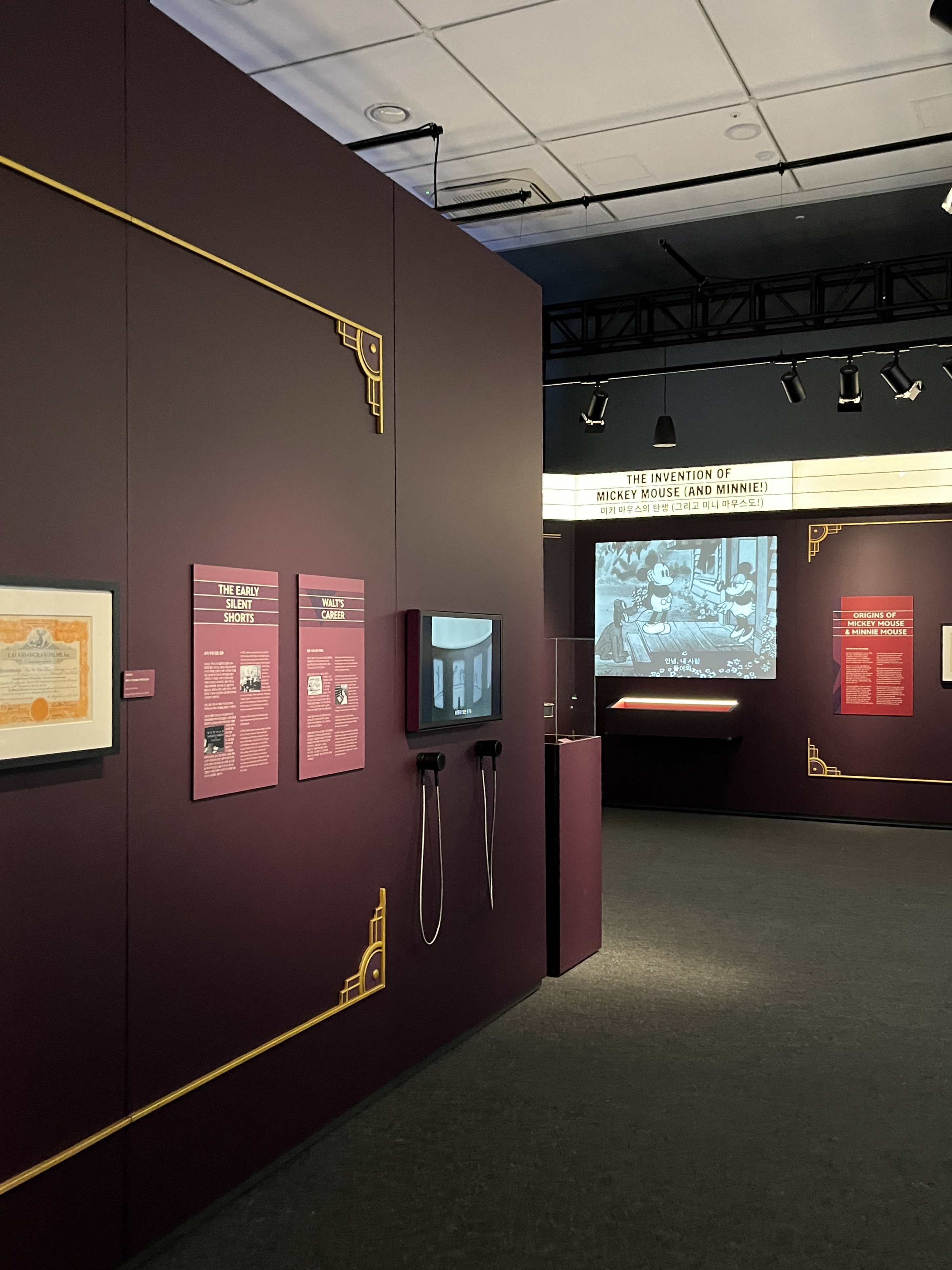 드디어 디즈니 100주년 전시회에 입장했습니다. 제일 먼저 나온 주제는 월트 디즈니에 관련된 이야기, 미키마우스 이전 시대부터 미키마우스가 데뷔하는 시기의 이야기들을 만나 볼 수 있습니다.