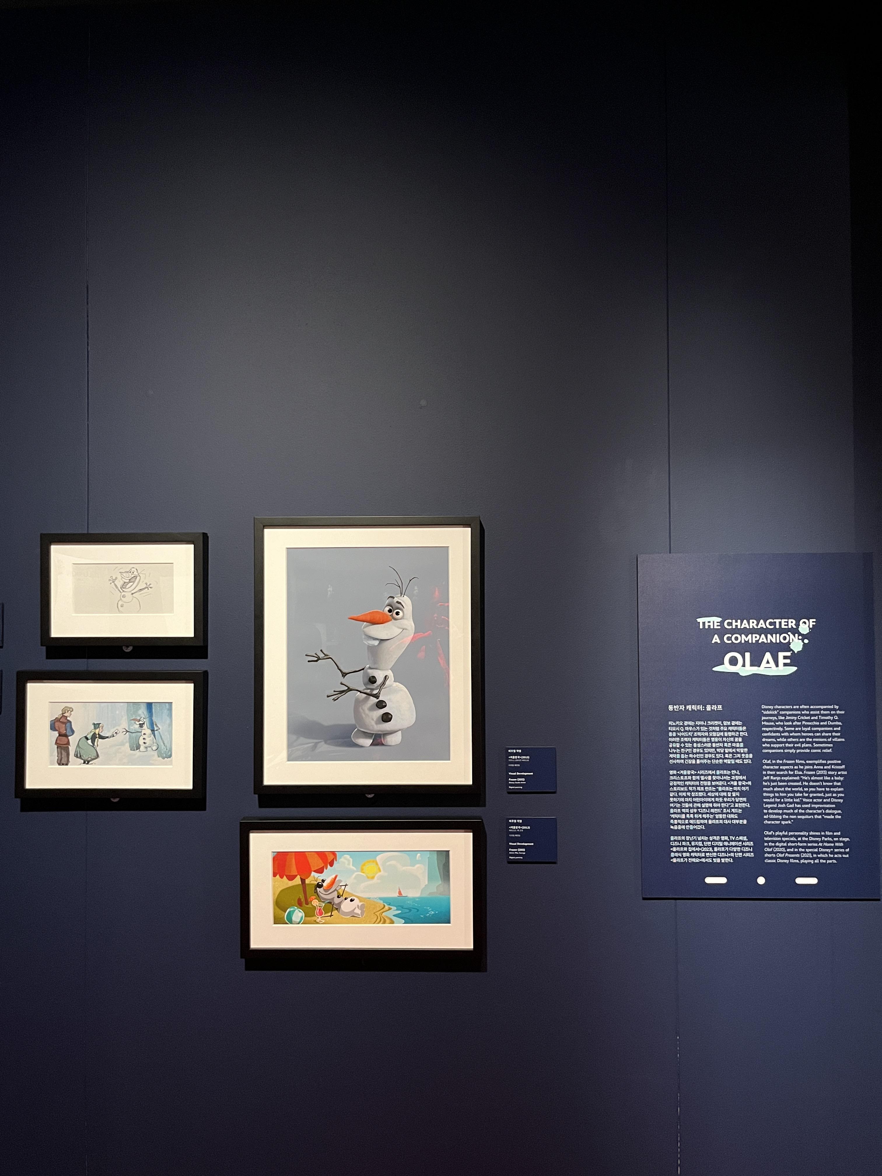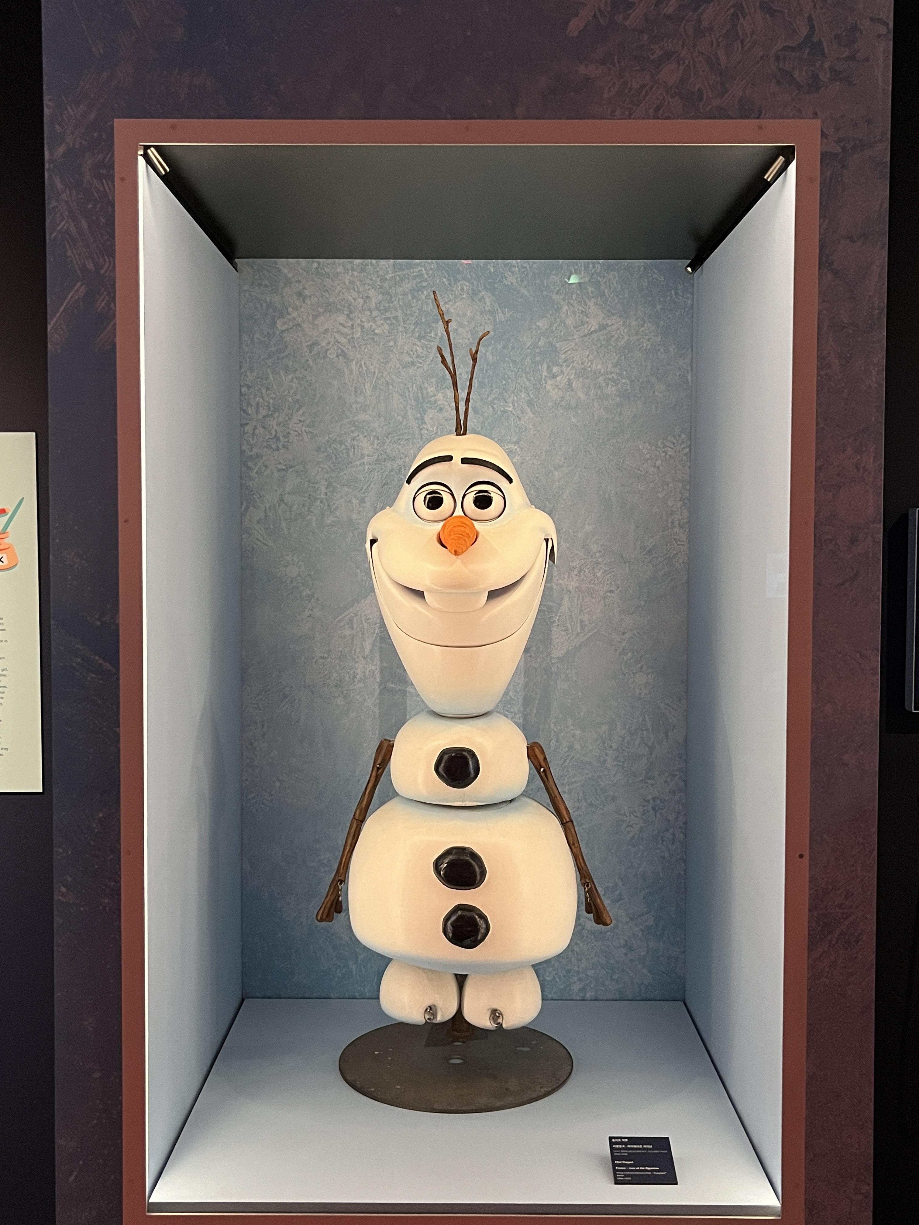 겨울왕국에 관련된 전시에서는 실제 실사화 뮤지컬에 등장하는 올라프를 눈으로 볼 수 있습니다.