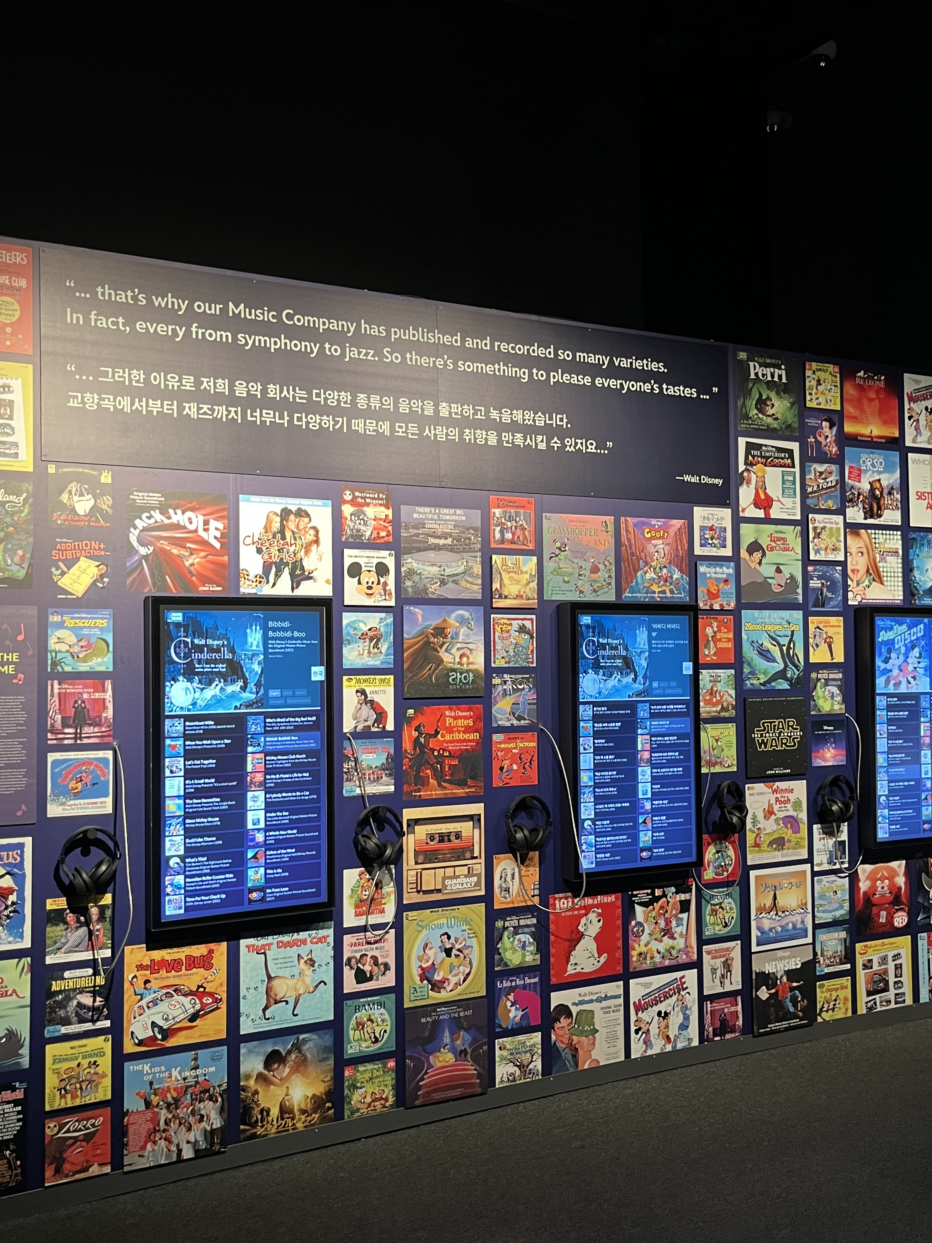 다음 전시는 음악에 관한 전시입니다. 디즈니 하면 역시 음악을 빼놓을 수 없는데요. 역시나 전시회에서도 음악에 관련된 전시가 있습니다.