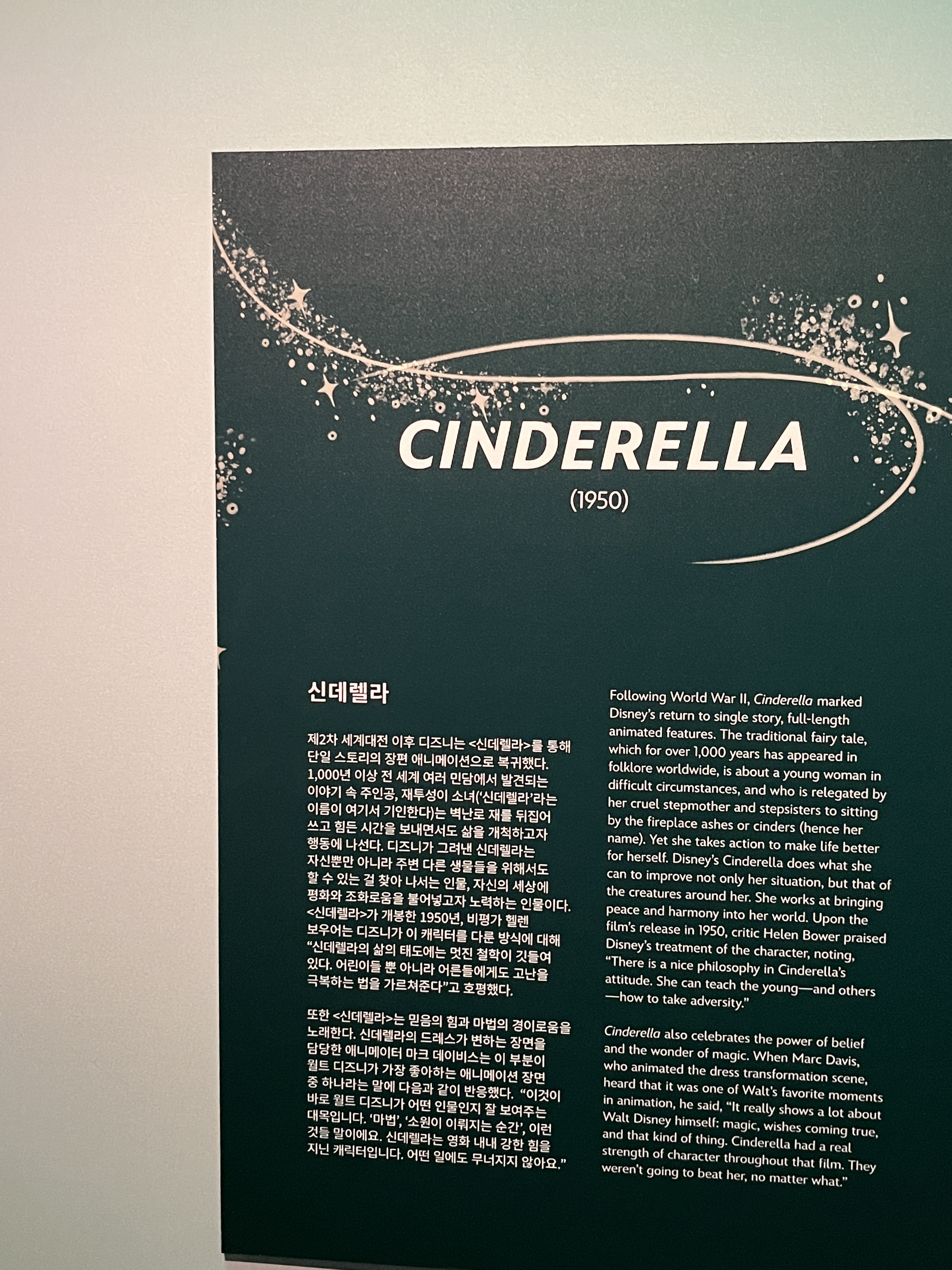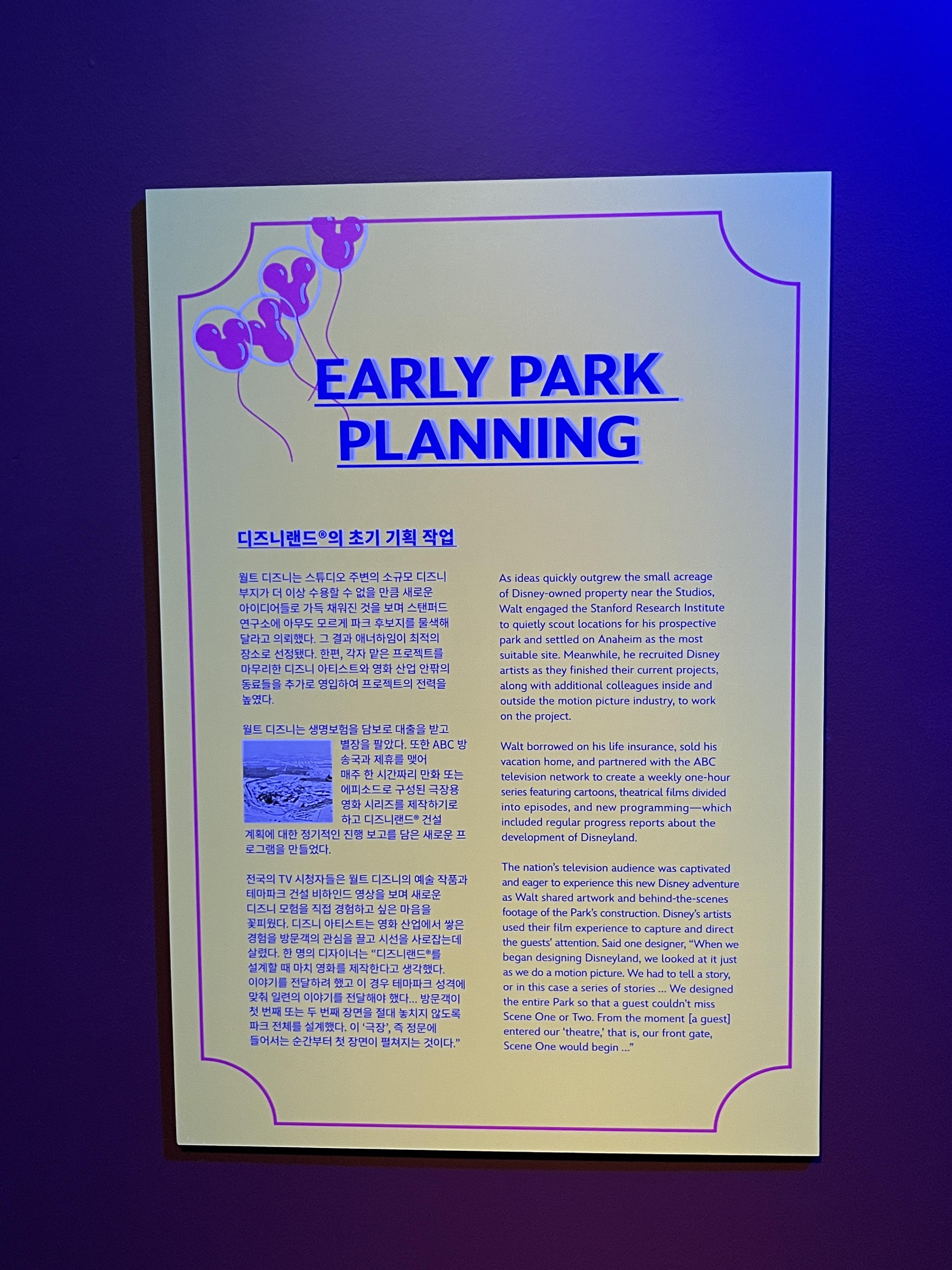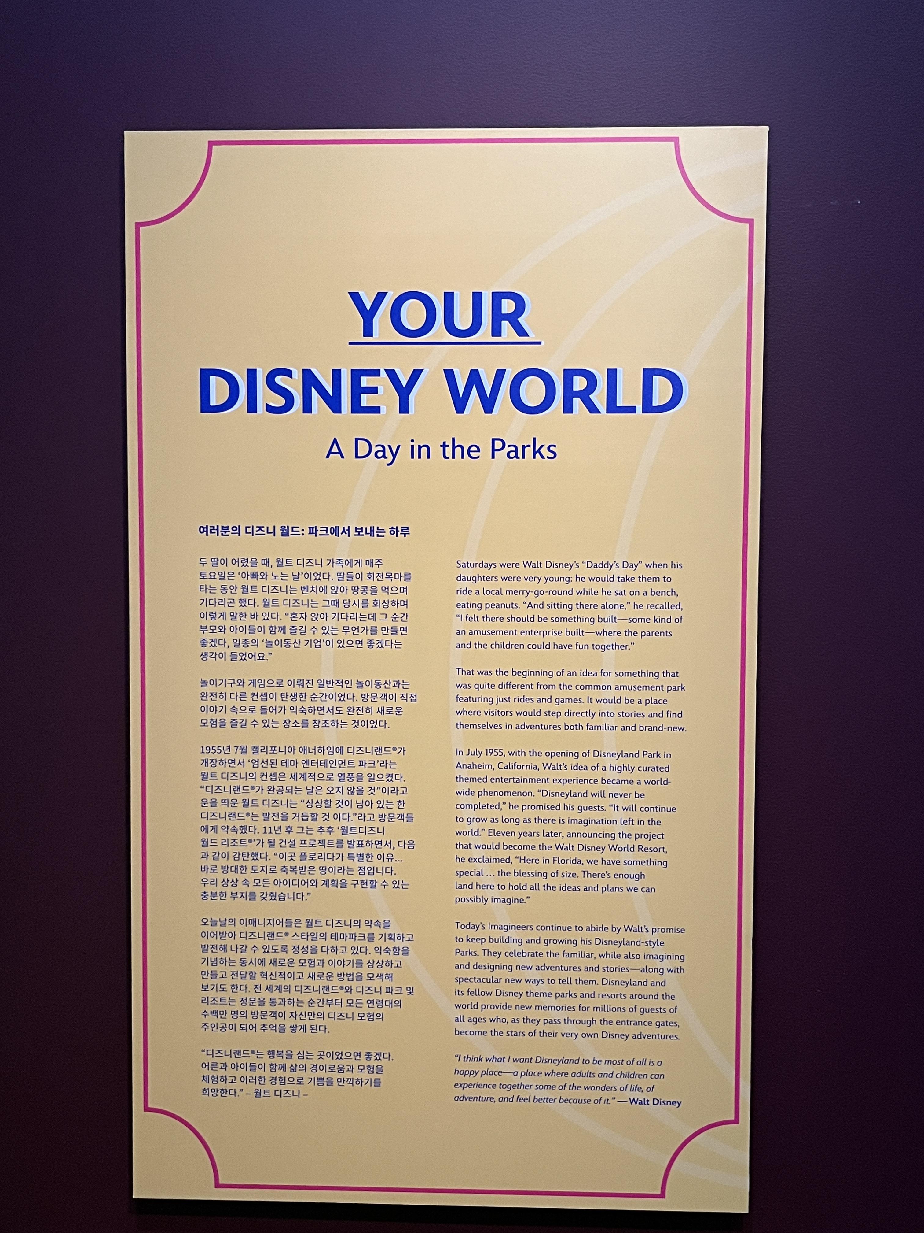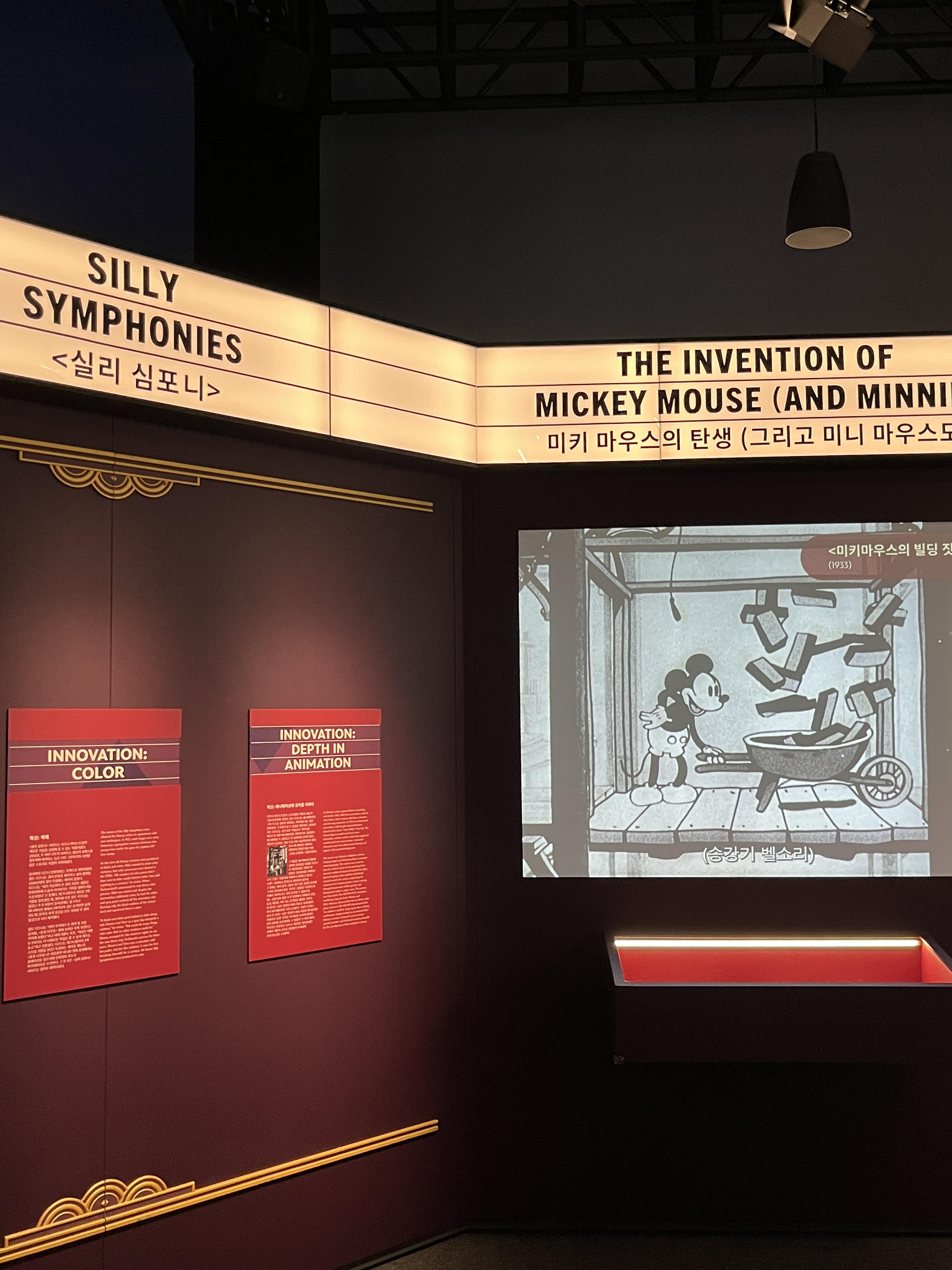 디즈니랜드의 역사부터 직접 디즈니랜드에 온 것 같은 배경음악과 분위기는 덤으로 느낄 수 있었습니다. 디즈니랜드 전시에서는 배경음악이 디즈니랜드에서 흘러나오는 음악 같았습니다.