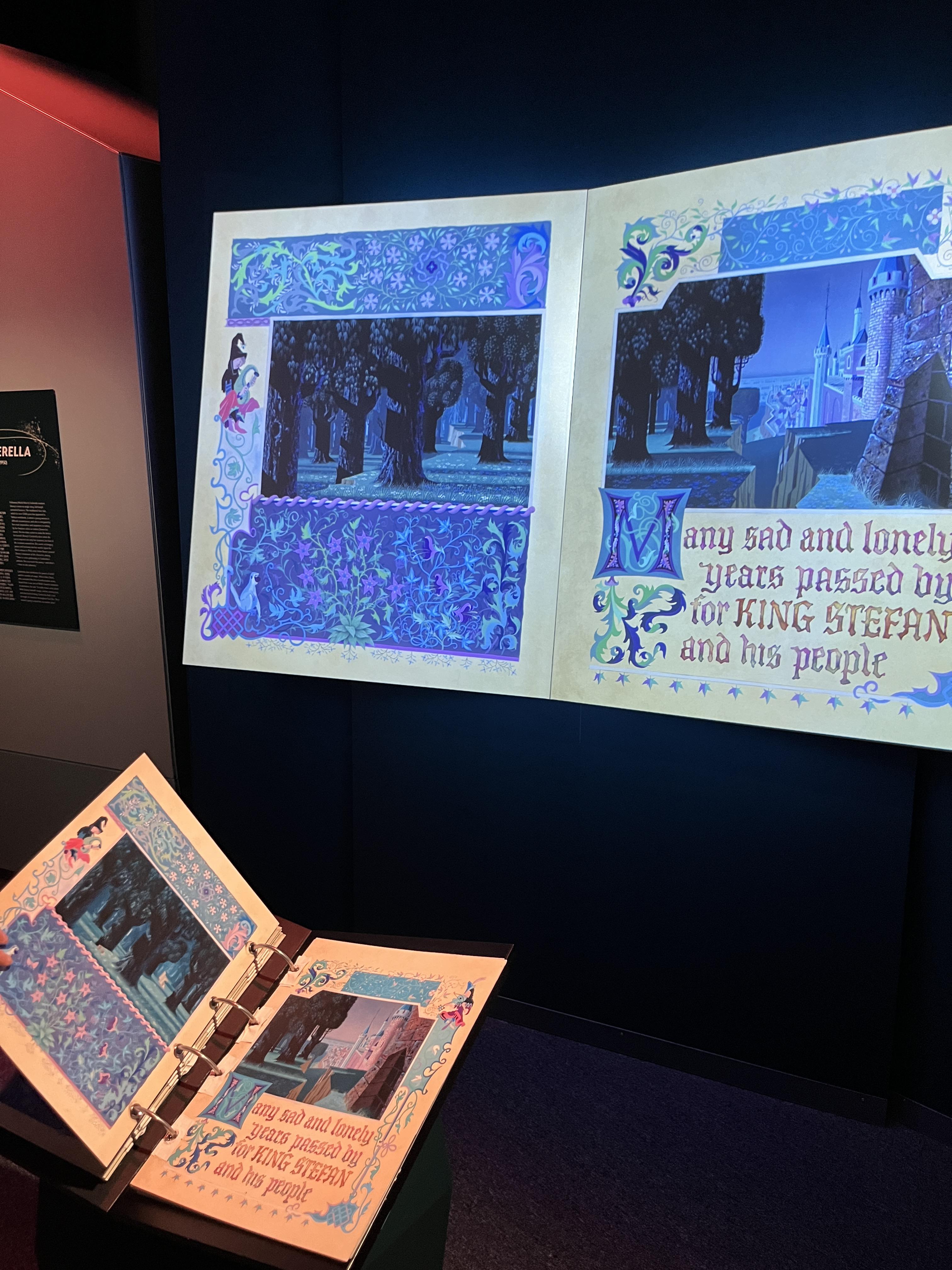 잠자는 숲 속의 공주에 관한 전시 중 동화책 같은 게 하나 놓여있었는데요. 이 책을 넘기면 앞에 큰 화면에 나오는 책도 같이 넘어갑니다.