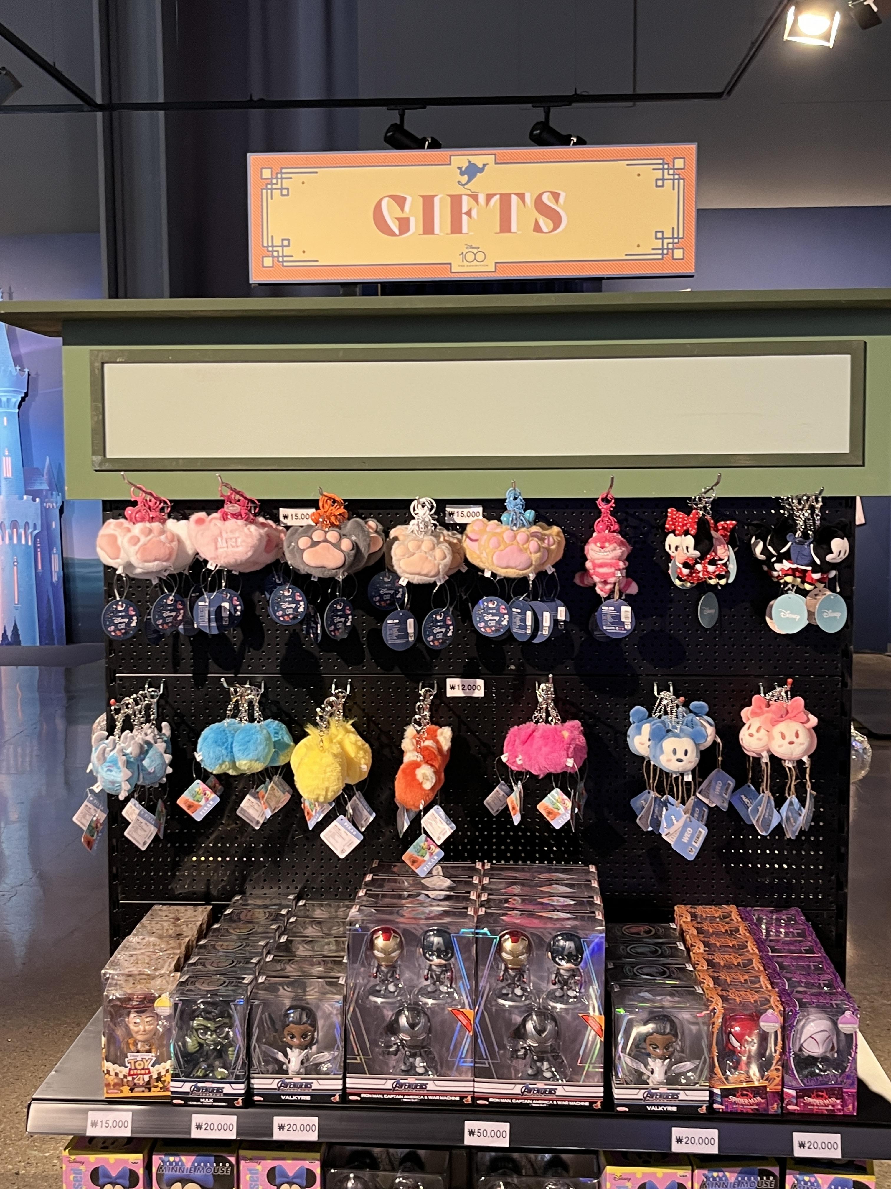 그렇지만 디즈니 100주년 특별전의 한정 굿즈는 얼마 없는 것 같아 아쉬웠습니다. 도록이나 에코백, 머리띠정도만 있는 것 같았고 그마저도 디자인에 비해 가격이 비싼 편이라 앞서 봐 두었던 키링만 구매했습니다.