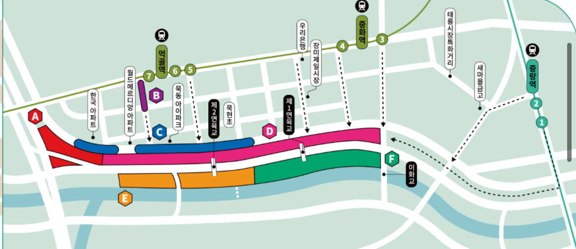 저희는 태릉입구역 근처부터 중화역 근처까지 이어진 장미길을 따라 걸으며 장미를 보기 시작했습니다.