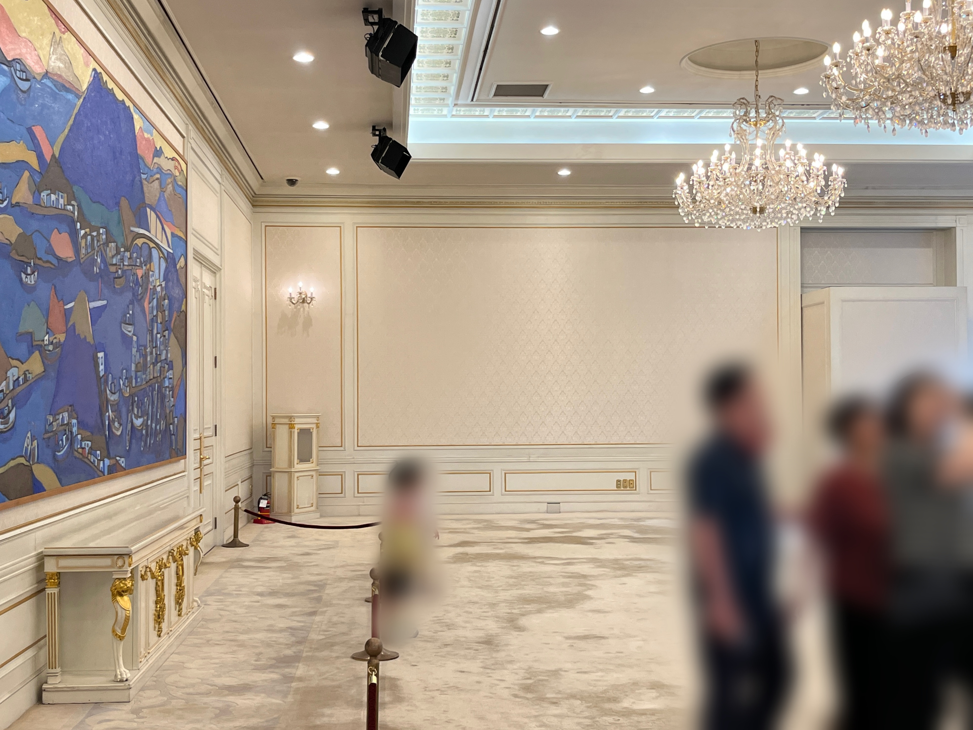 서양식으로 꾸며진 인왕실입니다. 간담회나 오찬• 만찬이 열리는 소규모 연회장, 그리고 외국 정상 방한 때 공동 기자회견을 하는 장소로도 활용한 공간입니다. 화려하고 밝은 느낌이 눈길을 사로잡습니다.